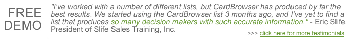 We are excited to have partnered with CardBrowser to bring you quality, current and high-level names to add to your 'prospect' database.