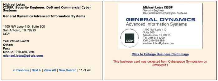 We display the actual business card image which you can click to enlarge. Business cards will often have professional credentials i.e. Dr., MD, PhD, Esq., certifications, associations, and accomplishments i.e. “Presidents Club Member”, etc. A full text conversion of all contact info including name, title, company, website, address, country, phone, mobile #, and email address… and the trade show and date where we met them. An explicit title – nothing shortened or exaggerated – which tells you exactly who the person is. No more “VP” or other titles that people type in and leave you wondering who they really are. The address where they actually work – and not a corporate HQ commonly found on lists and other data sources. A direct dial to an office desk, remote or home office – as opposed to 800 #s and main corporate phone numbers. A mobile number so that you can dial or text someone – the most likely way to reach people and get the fastest response. A 100% accurate email address which comes directly from the person’s business card. The trade show and date where we collected the person’s business card. This gives you a credible and warm frame of reference when calling or sending email. A picture.. or in this case a business card… is worth a thousands words – look at the sample card above one more time. Need we say more?